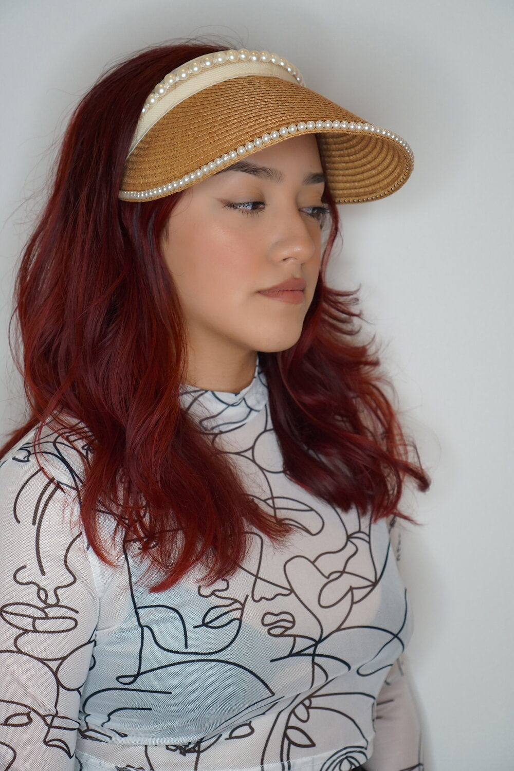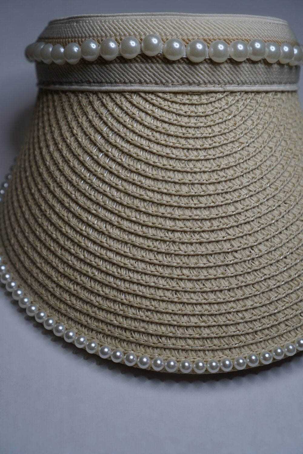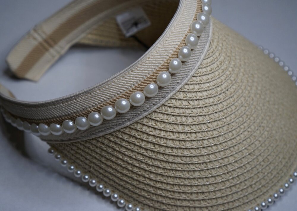 Natural/Ivory Visor embedded with pearl borders. perfect for those sunny days and beach trips!