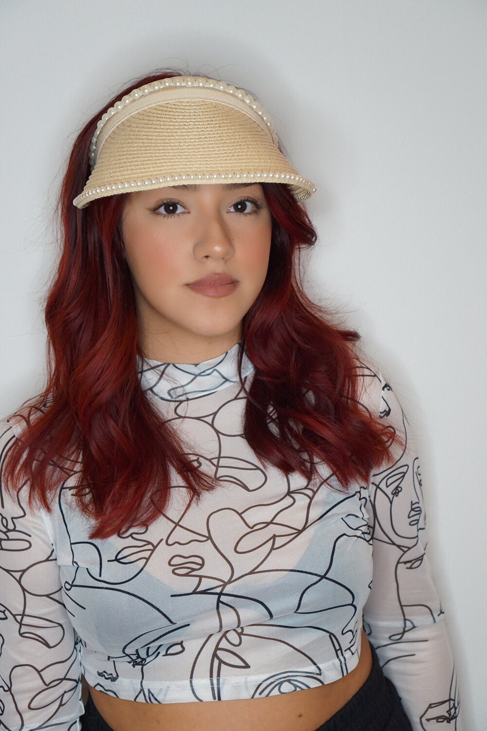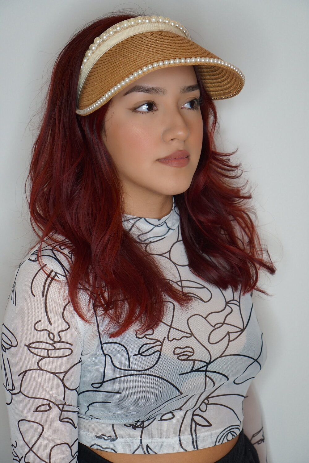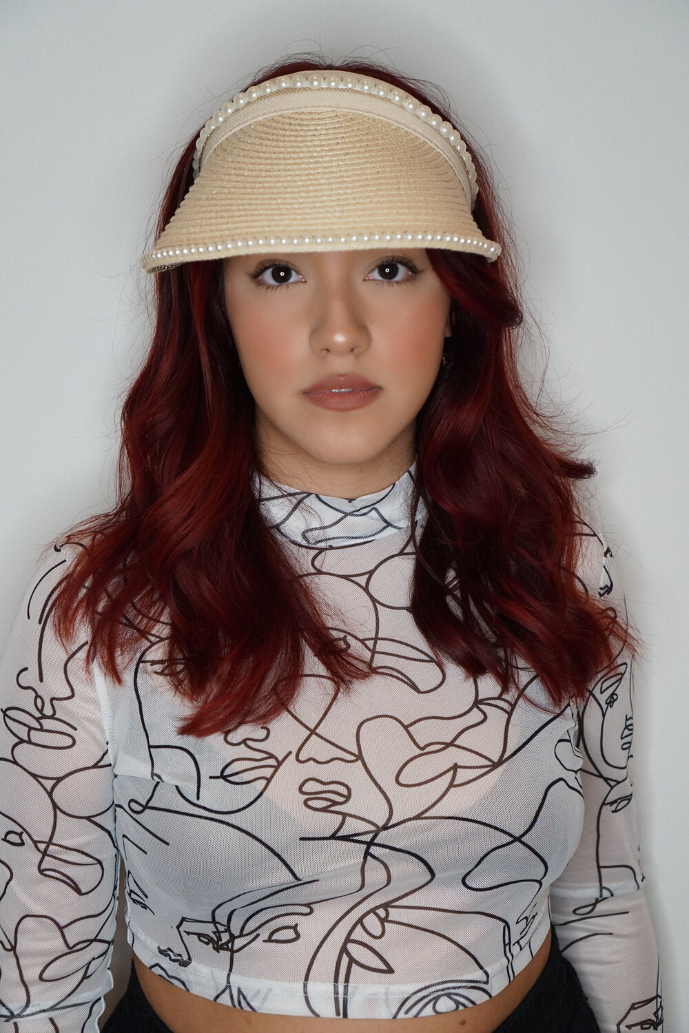 Natural/Ivory Visor embedded with pearl borders. perfect for those sunny days and beach trips!